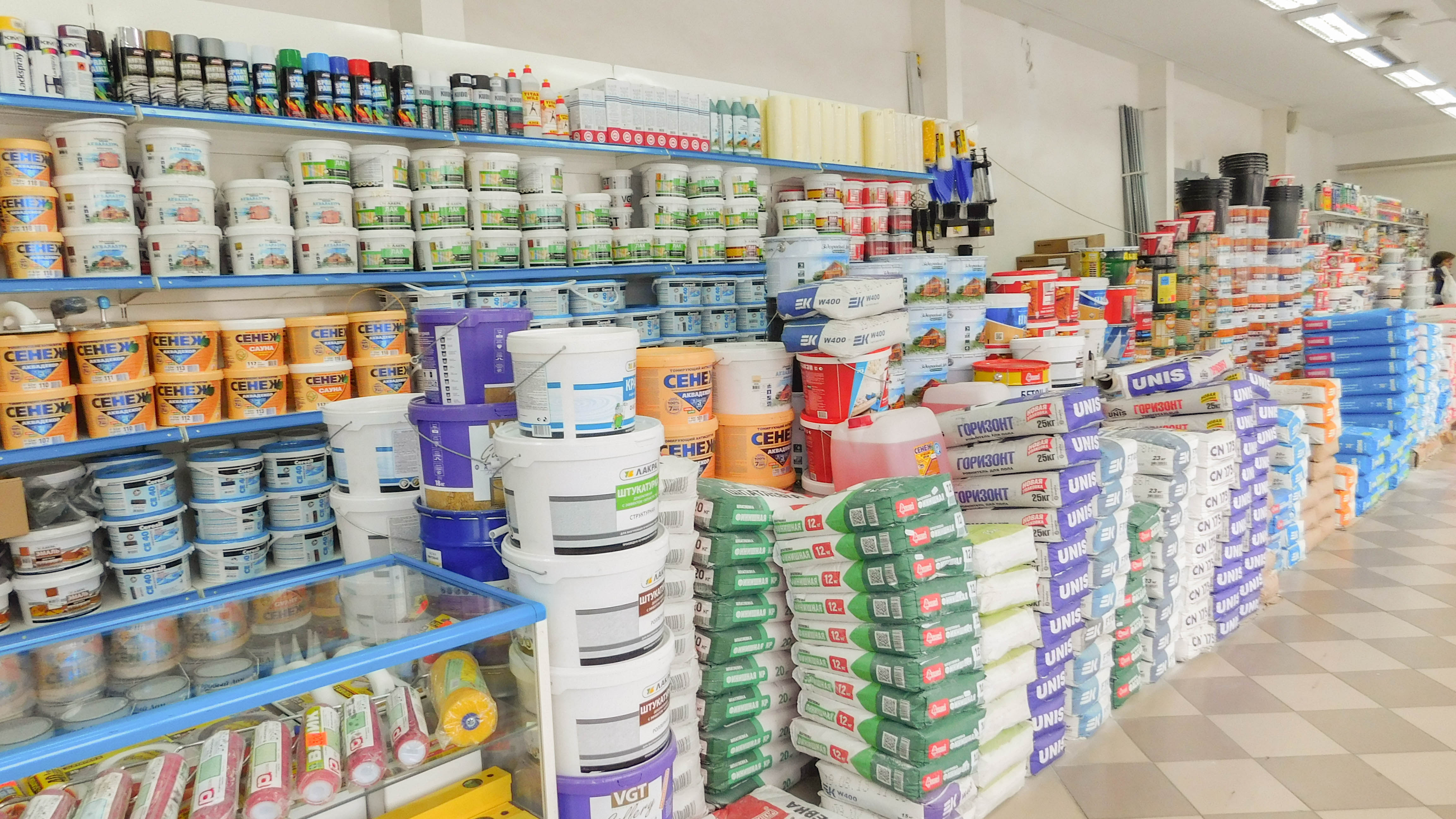 У нас есть все виды материалов: смеси для штукатурки, шпатлевки и стяжки, обои, линолеум, ламинат, кафельная плитка и др.