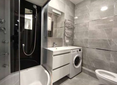 Выполненные работы: поклеены обои, на полу сделана стяжка, уложена плитка и ламинат, натяжной потолок. В санузле керамогранит на стенах и на полу. Монтаж сантехники электромонтажные работы
