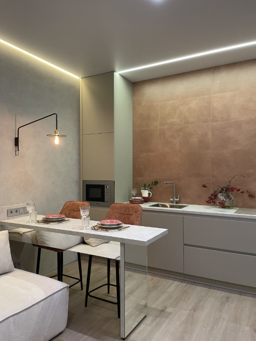 Запрос клиента: требовался полный ремонт двухкомнатной квартиры под ключ: демонтаж, черновые и отделочные работы, замена коммуникаций, подбор и закупка материалов. Клиент хотел современный стиль, всё под ключ без своего участия